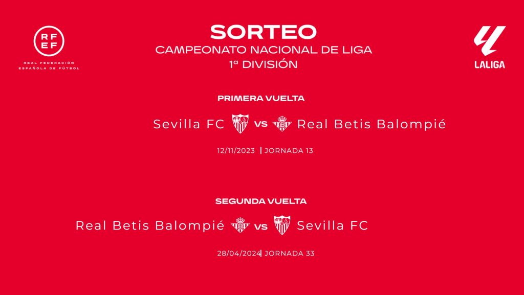 El Sevilla y el Real Betis Balompié medirán fuerzas primero en el estadio Ramón Sánchez-Pizjuán (Jornada 13) y posteriormente jugarán en el estadio Benito Villamarín (Jornada 33).