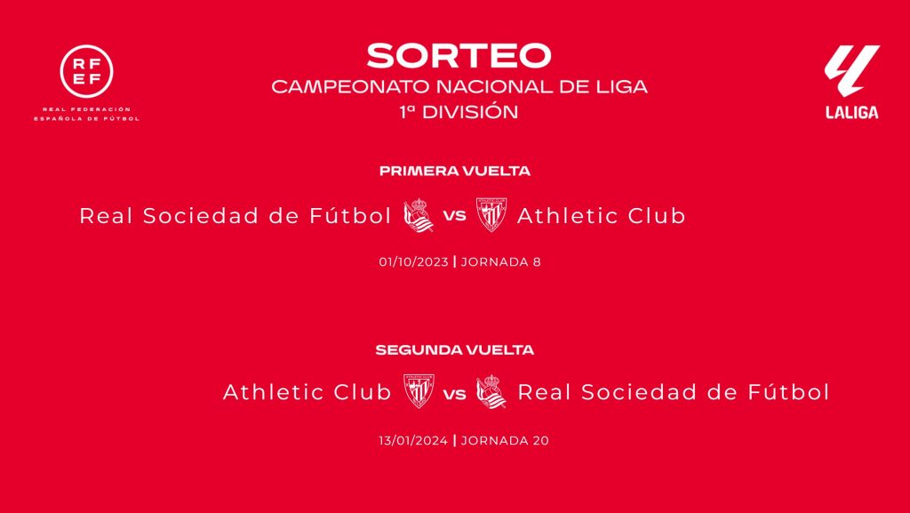 Los dos grandes del País Vasco se enfrentarán en la ida en el Reale Arena (Jornada 8) y en la vuelta lo harán en el estadio de San Mamés (Jornada 20).
