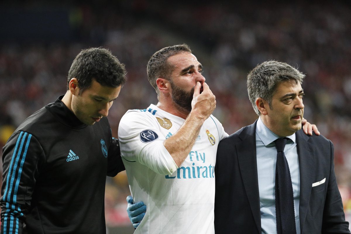 Dani Carvajal, defensa español del Real Madrid, que se retiró lesionado el…